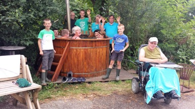 We luiden de zomervakantie in met een gezamenlijke lunch. Het bakken van pannenkoeken op melkbussen blijft een favoriete happening. Daarna de hottub in, is het toppunt van genot en plezier.
