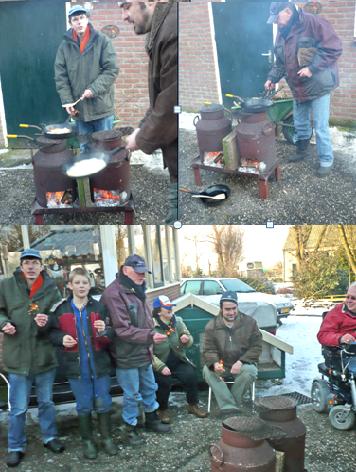 Het was een van die zeldzame mooie zonnige dagen. Ook dit jaar wilden men graag pannenkoeken bakken op melkbussen. We zaten buiten in de zon. Twee dagen later viel er een pak sneeuw dat tot in het nieuwe jaar zou blijven liggen.