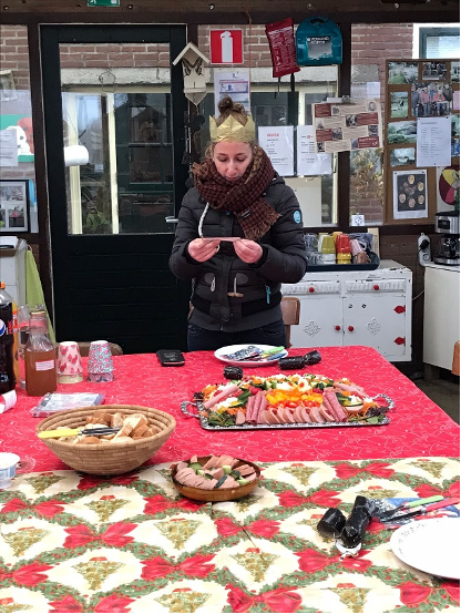 Het was zalig weer, er scheen een lekker zonnetje. Bijzonder om Kerst buiten te vieren. We hebben pannenkoeken gebakken op melkbussen. Ze smaakten heerlijk en iedereen was druk voor elkaar bezig. Daarna was er de Kerstbingo met velen prijzen. Iedereen had wel een aantal prijsjes, de felbegeerde hoofdprijs ging naar Ramona.
