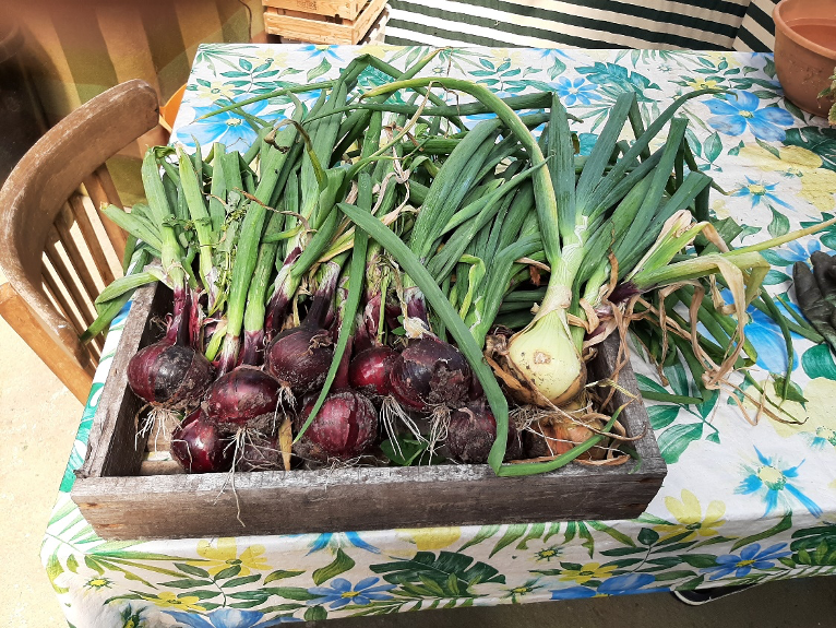 Dirk heeft de vergeten groente Groenlof in het voorjaar gezaaid. We moesten wel erg veel geduld hebben, maar eindelijk keurde Dirk de kropgrootte goed en maakte zelfs een over heerlijke ovenschotel voor ons klaar. We hebben gesmuld.