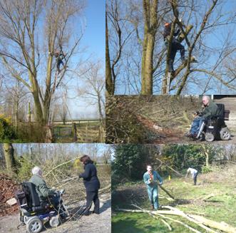Wouter Hofland kwam om een aantal veel te groot geworden wilgen te snoeien. Hij klom als een aap in de boom en zaagde grote takken af die met de juiste precisie op de geplande plekken vielen.
