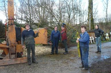En wij mochten allemaal meehelpen. We hebben dagen takken lopen slepen. De grote takken worden door Jaap Sakko in haardhoutblokken gezaagd. De stammen gaat Remco van de winter klieven.